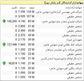 | سهامدار | نوع معامله | حجم معامله | زمان انتشار | منبع |